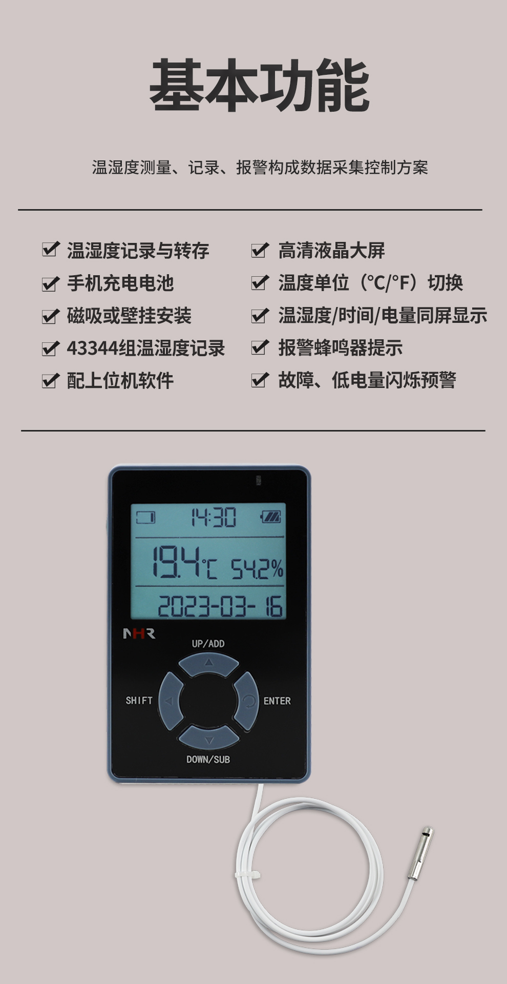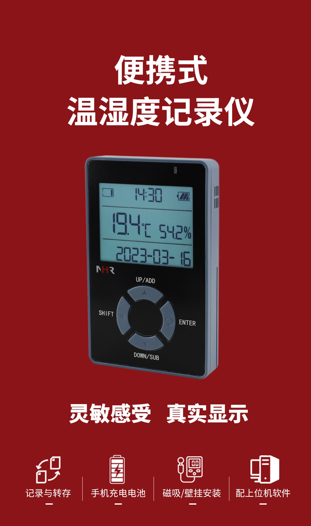 虹潤公司是專業(yè)生產(chǎn)環(huán)境監(jiān)測儀表的國家專精特新“小巨人”企業(yè)。生產(chǎn)的便攜式溫濕度記錄儀,具有溫濕度記錄與轉(zhuǎn)存,手機充電電池,磁吸或壁掛安裝,故障報警提示,配上位機軟件等特點。產(chǎn)品獲得一種手持式低功耗溫濕度檢測儀、無紙記錄儀等2項國家發(fā)明專利,主持起草物聯(lián)網(wǎng)智能溫度儀表通用技術(shù)條件、冷鏈溫度記錄儀等2項國家標準,通信系統(tǒng)多通道數(shù)據(jù)采集控制終端規(guī)范軍用標準,以及現(xiàn)場設備集成等5項智能制造國家標準,參與國際5G標準制定,取得便攜式溫濕度記錄儀等3項相關(guān)軟件著作權(quán)。產(chǎn)品廣泛應用于冷鏈運輸、醫(yī)藥冷庫、藥品陰涼柜、實驗室、機房倉庫、養(yǎng)殖孵化、大棚種植等諸多領(lǐng)域。